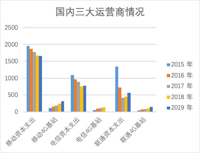 以4G時代國內(nèi)三大運營商的資本支出和基站建設(shè)進程為例,隨著2013年12月4G牌照發(fā)放,2014年中移動4G基站數(shù)量達到72萬,2015年三大運營商的建設(shè)資金投入達到峰值,隨后三大運營商的資本支出逐年降低,但4G基站的建設(shè)數(shù)量持續(xù)增長。