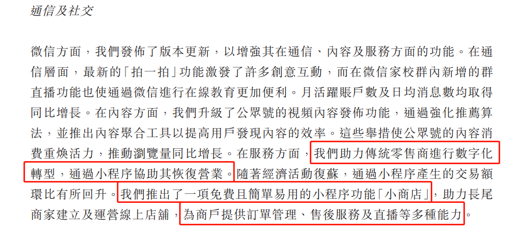 自2018年四季度騰訊提出推出基于“小程序”以來,這個功能便如同騰訊的秘密武器,一直沒有披露官方數據。此次財報,小程序的數據仍然沒有披露,但是2020這半年以來,小程序生態爆發的態勢,已經能夠感受到。