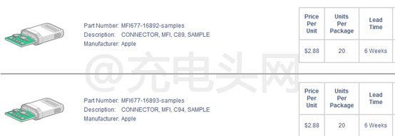 隨著USB-C to Lightning數據線正式上市時間臨近,蘋果面向所有MFi會員企業通知了C89和C94樣品采購架構,開始正式提供樣品購買,同時樣品已經在蘋果指定供應商AVNET和ARROW網站上上線。