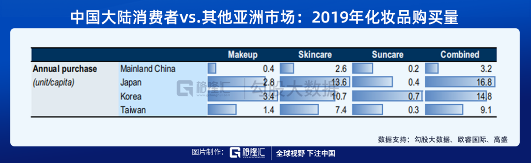 如果把市場分為高端市場和大眾市場,高盛預(yù)計(jì)高端化妝品產(chǎn)品的市場占比有望從2019年的48%上漲至2025年的53%,成為我國化妝品市場的核心力量。
