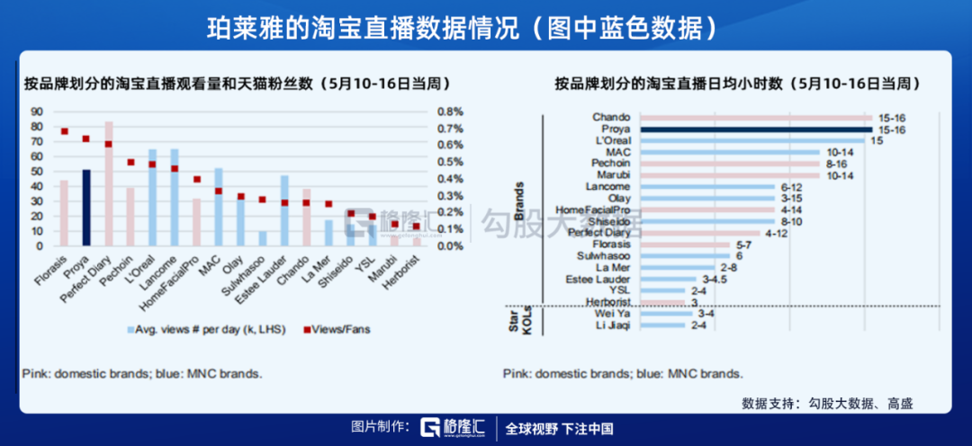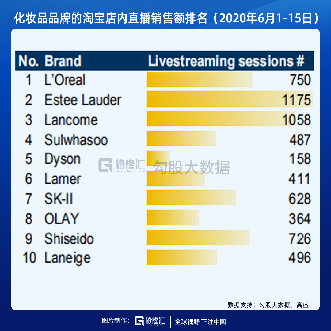 而且,與國產(chǎn)品牌相比,盡管國際大牌們的線上渠道占比較低,但它們也在加速線上布局,同時(shí)開始在低線城市開設(shè)專營店。今年6月以來,歐萊雅、雅詩蘭黛等國際品牌的淘寶直播場次排名已經(jīng)沖到前列。無論在累計(jì)直播時(shí)長還是直播轉(zhuǎn)化率上,國產(chǎn)品牌和國際大牌之間并沒有明顯差距。