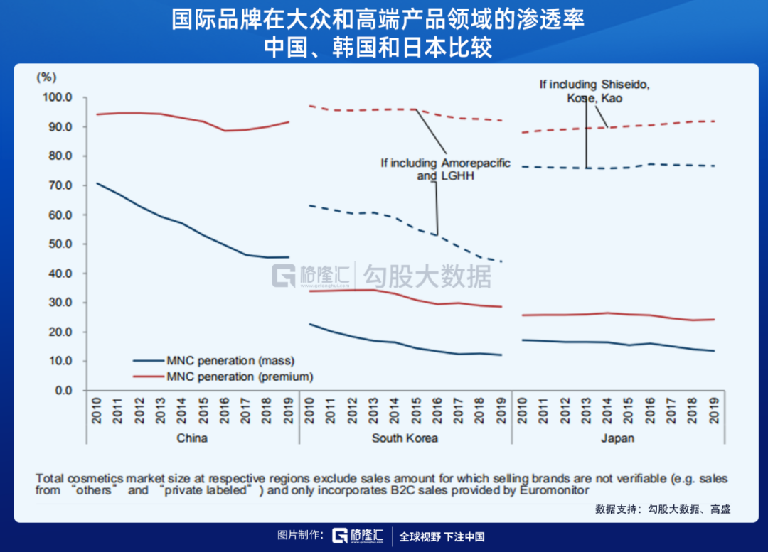如果參考其他的亞洲國家,可以發(fā)現(xiàn)隨著市場的發(fā)展,國際品牌的市場份額最終會(huì)被成熟的本土品牌奪走,例如日本和韓國。所以,"四舍五入",我們或許可以直接下結(jié)論稱在中國的化妝品市場上,外資大牌終將會(huì)被本土大牌替代。
